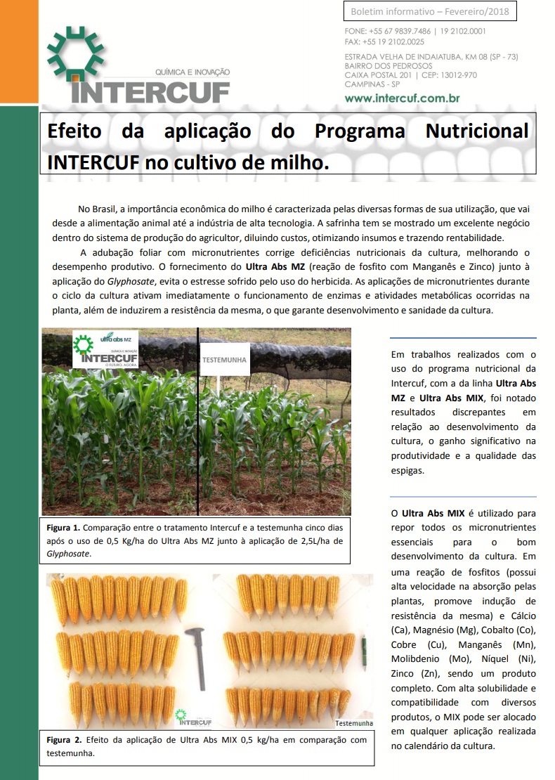 Efeito da aplicação do Programa Nutricional INTERCUF no cultivo de milho. ...