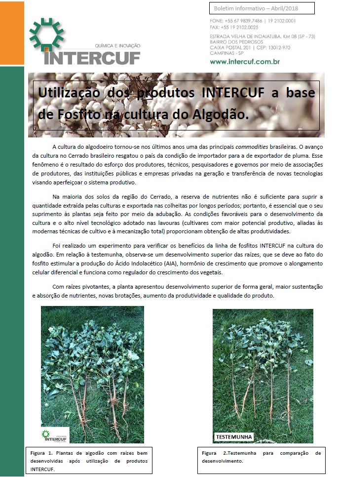 Utilização dos produtos INTERCUF a base de Fosfito na cultura do Algodão. ...