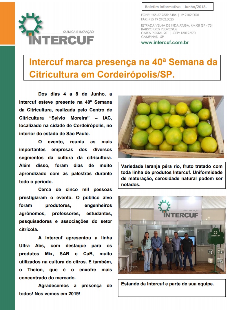 O portfólio INTERCUF apresenta fertilizantes foliares de alta tecnologia e com formulações balanceadas, detida apenas por nós.